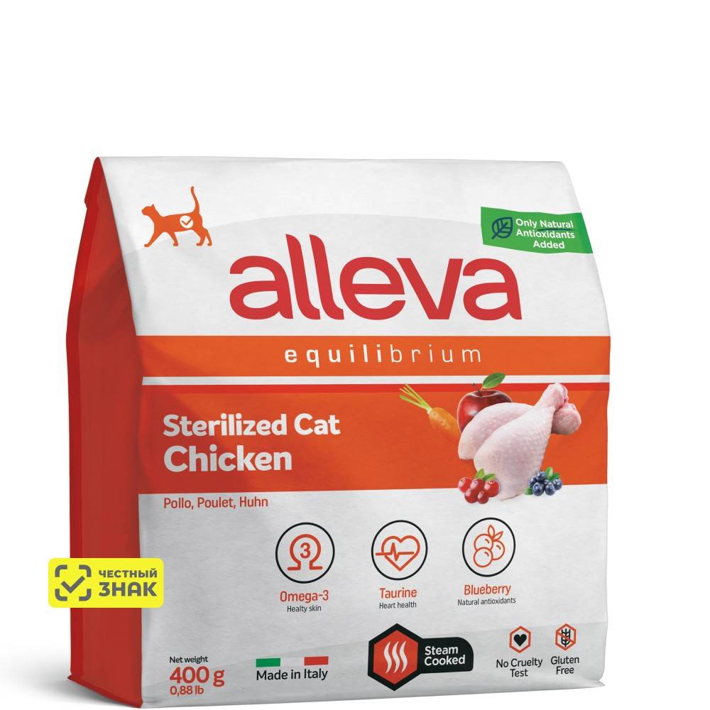 ALLEVA Equilibrium Sterilized Сухой корм для кастрированных котов и стерилизованных кошек, с курицей, 400 гр.