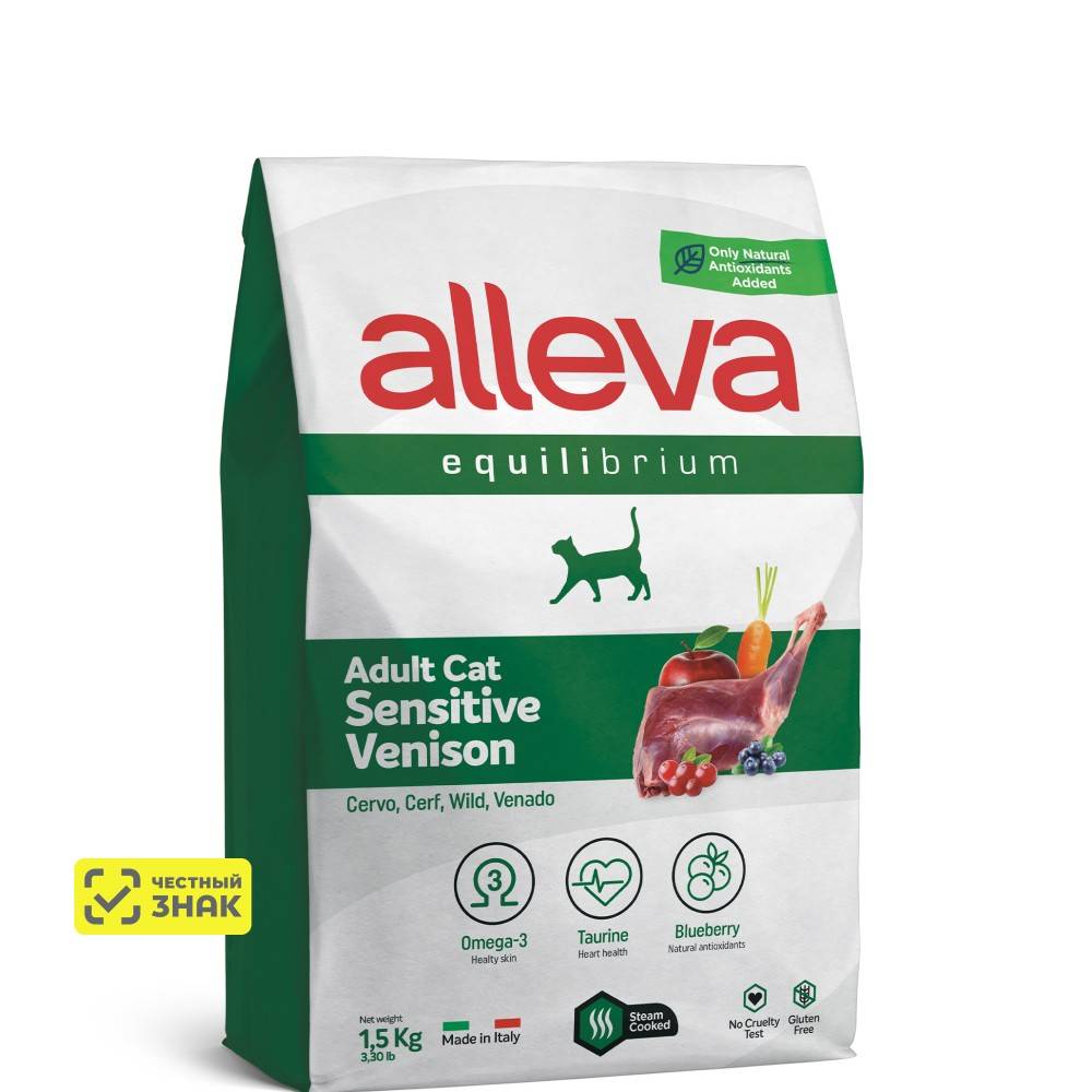 ALLEVA Equilibrium Adult Sensitive Cухой корм для взрослых кошек с чувствительным пищеварением, с олениной, 1,5 кг