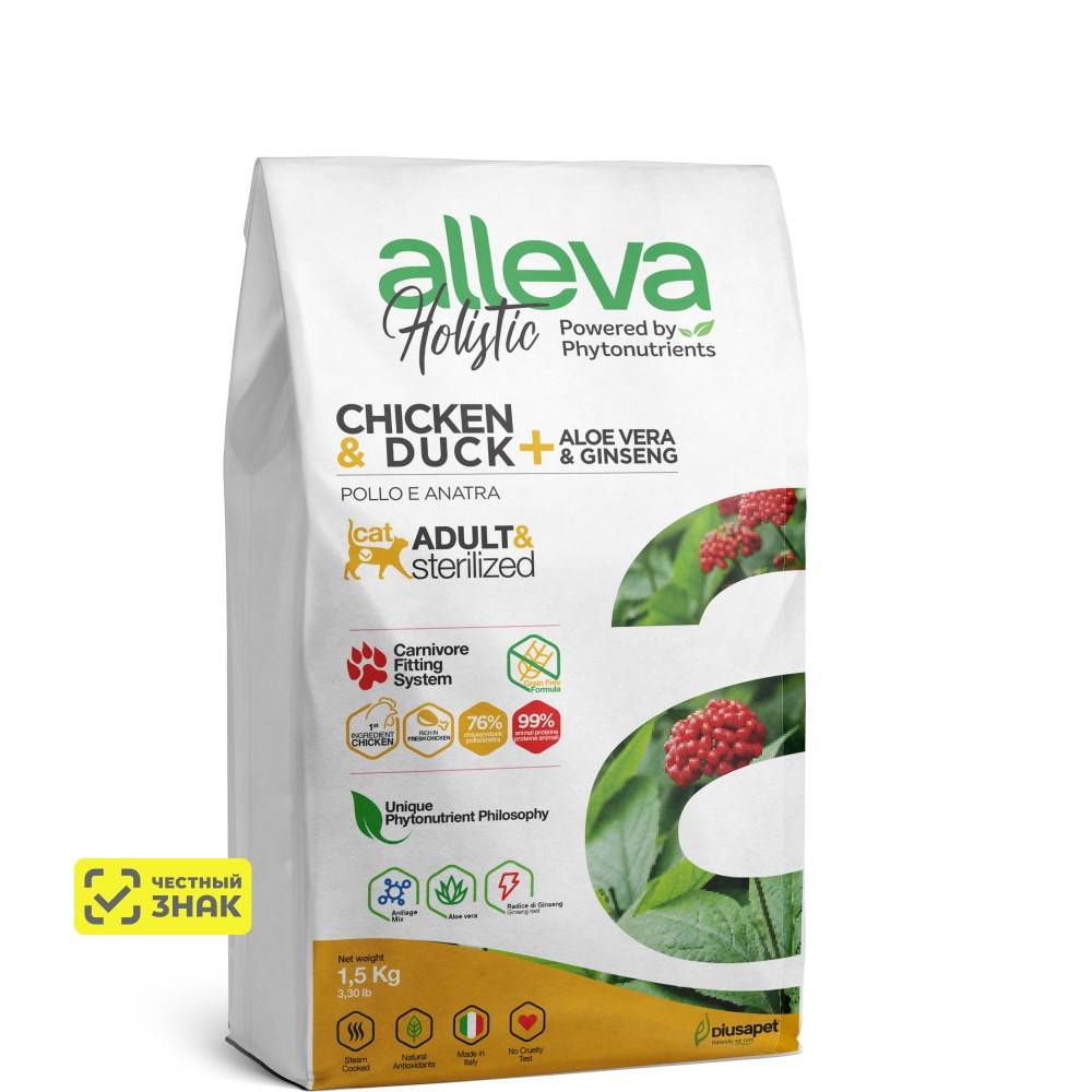 Alleva Holistic – беззерновой полнорационный сбалансированный корм превосходного итальянского качества. Корм для настоящих облигатных хищников, которым требуется большое количество животных белков и жиров и не требуется большого количества углеводов.