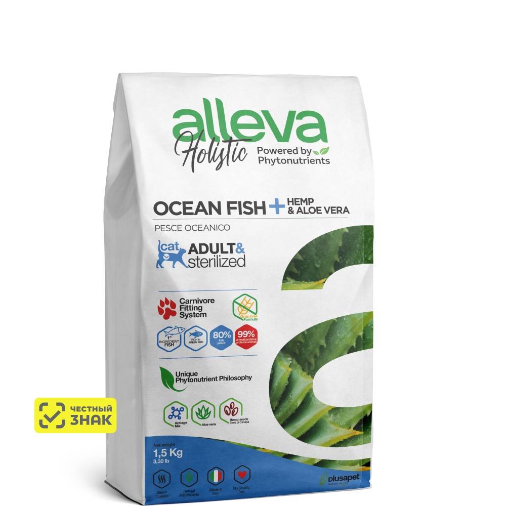 ALLEVA Holistic Сухой корм для взрослых кошек, с океанической рыбой, коноплей и алое вера, 1,5 кг