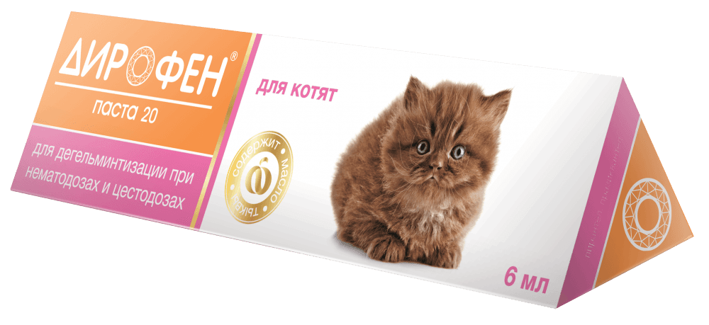 – взрослым кошкам, щенкам, котятам, хорькам и декоративным грызунам – 1 мл Дирофен-пасты 20 на 1 кг массы животного;