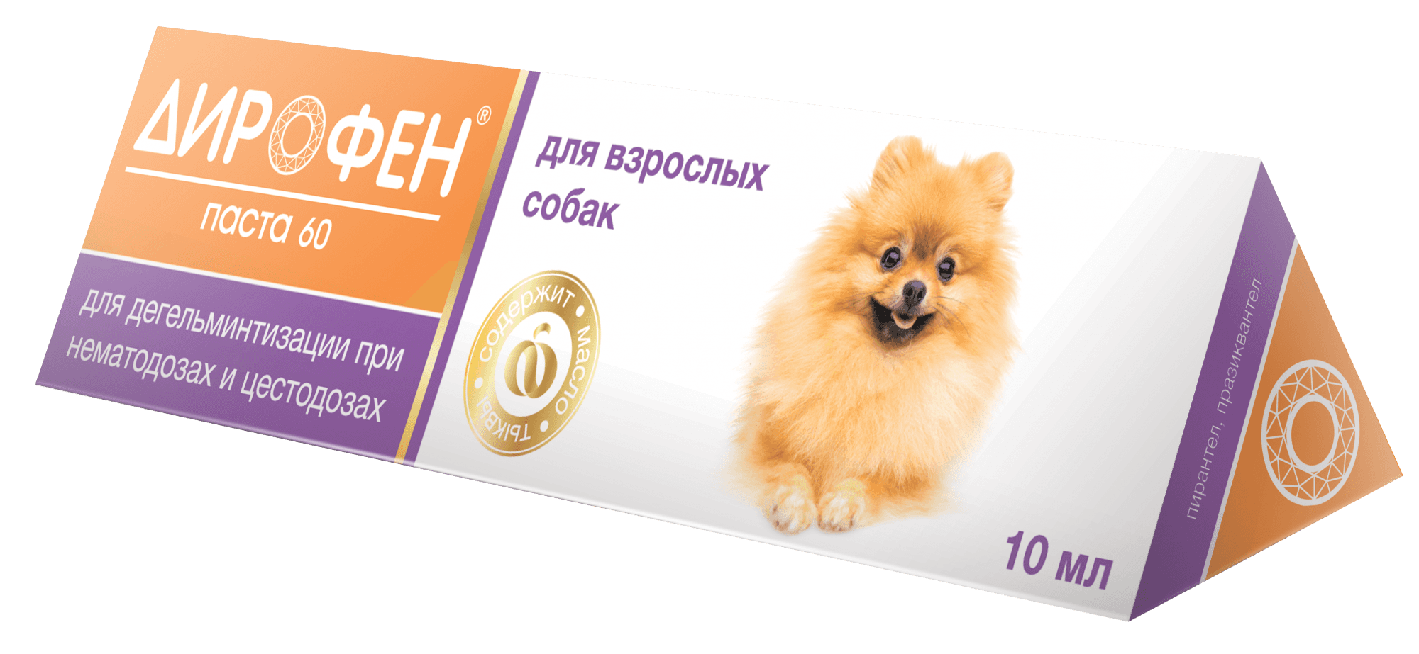 - взрослым собакам – 1 мл Дирофен-пасты 60 на 3 кг массы животного;