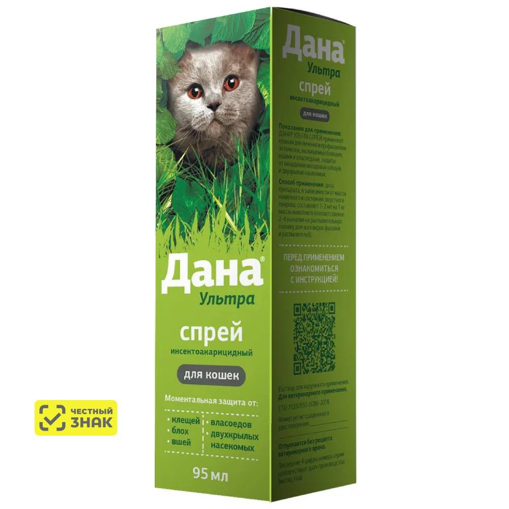 Дана Ультра спрей для кошек всех пород от блох, вшей, клещей, власоедов и комаров, 95 мл.
