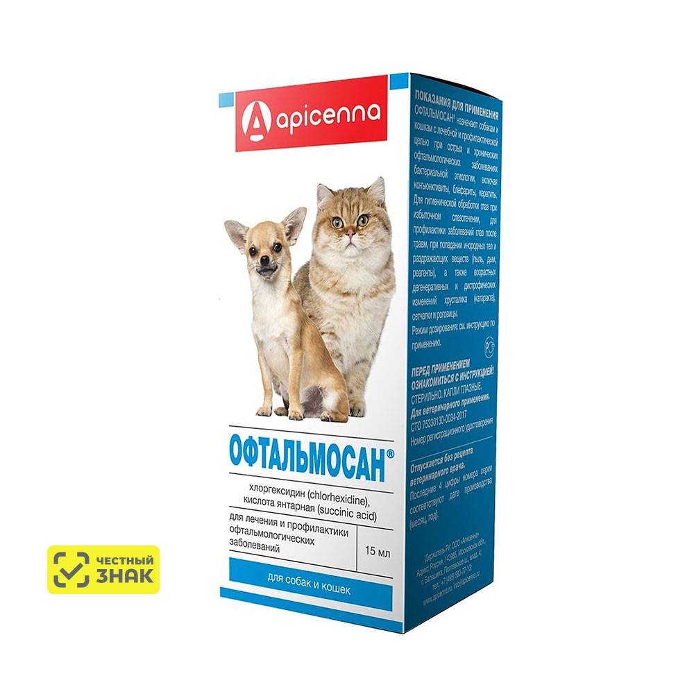 Офтальмосан назначают собакам и кошкам с лечебной и профилактической целью при острых и хронических офтальмологических заболеваниях бактериальной этиологии, включая конъюнктивиты, блефариты, кератиты. Для гигиенической обработки глаз при избыточном слезотечении, для профилактики заболеваний глаз после травм, при попадании инородных тел и раздражающих веществ (пыль, дым, реагенты), а также возрастных дегенеративных и дистрофических изменений хрусталика (катаракта), сетчатки и роговицы.