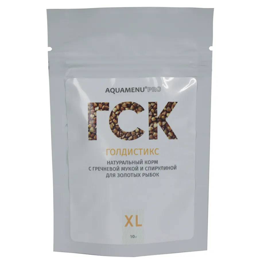 - ГСК (Гречишно-спирулиновый корм) XL Голдистикс – плавающие палочки фракцией 3-5 мм для золотых рыбок и других растительноядных и всеядных рыб.