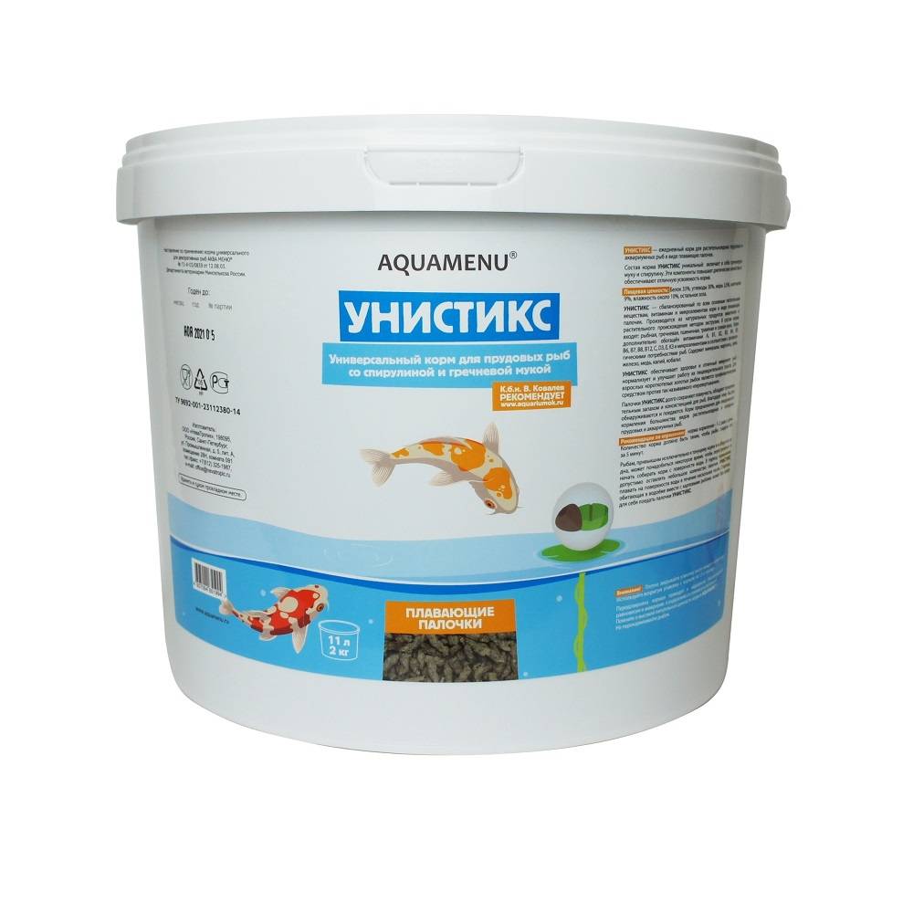 УНИСТИКС — ежедневный корм для растительноядных прудовых и аквариумных рыб виде плавающих палочек. Состав корма УНИСТИКС уникальный: включает себя гречневую муку и спирулину. Эти компоненты повышают диетические качества обеспечивают отличную усвояемость корма.
