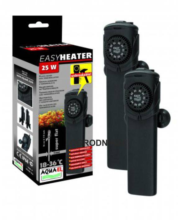 Обогреватель электрический EASYHEATER 100W фирмы Aquael отличается стильным дизайном, компактными размерами и максимальной простотой использования. Устанавливается на стекло аквариума, может работать горизонтально, полностью погружается в воду. Обеспечивает точную регулировку температурного режима в широком диапазоне. Абсолютно безопасен для рыб.