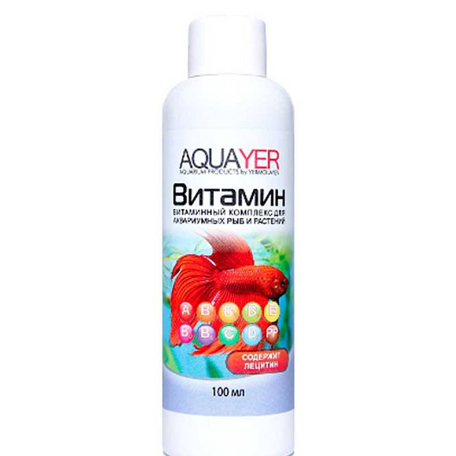 - Рекомендуется применять AQUAYER Витамин в случаях стресса у аквариумных рыб.Например, при пересадке рыб из одного аквариума в другой.При транспортировке. А также после проведения курса лечения лекарственными препаратами.