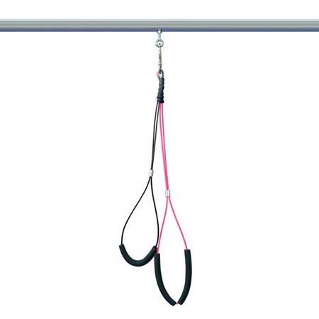 Поводок для собак с двойной петлей Гранд удобно фиксируется на кронштейне. Две петли крепятся на шее и под животом собаки. Это необходимо для того, чтобы у собаки не было возможности садиться на стол во время стрижки или двигаться.