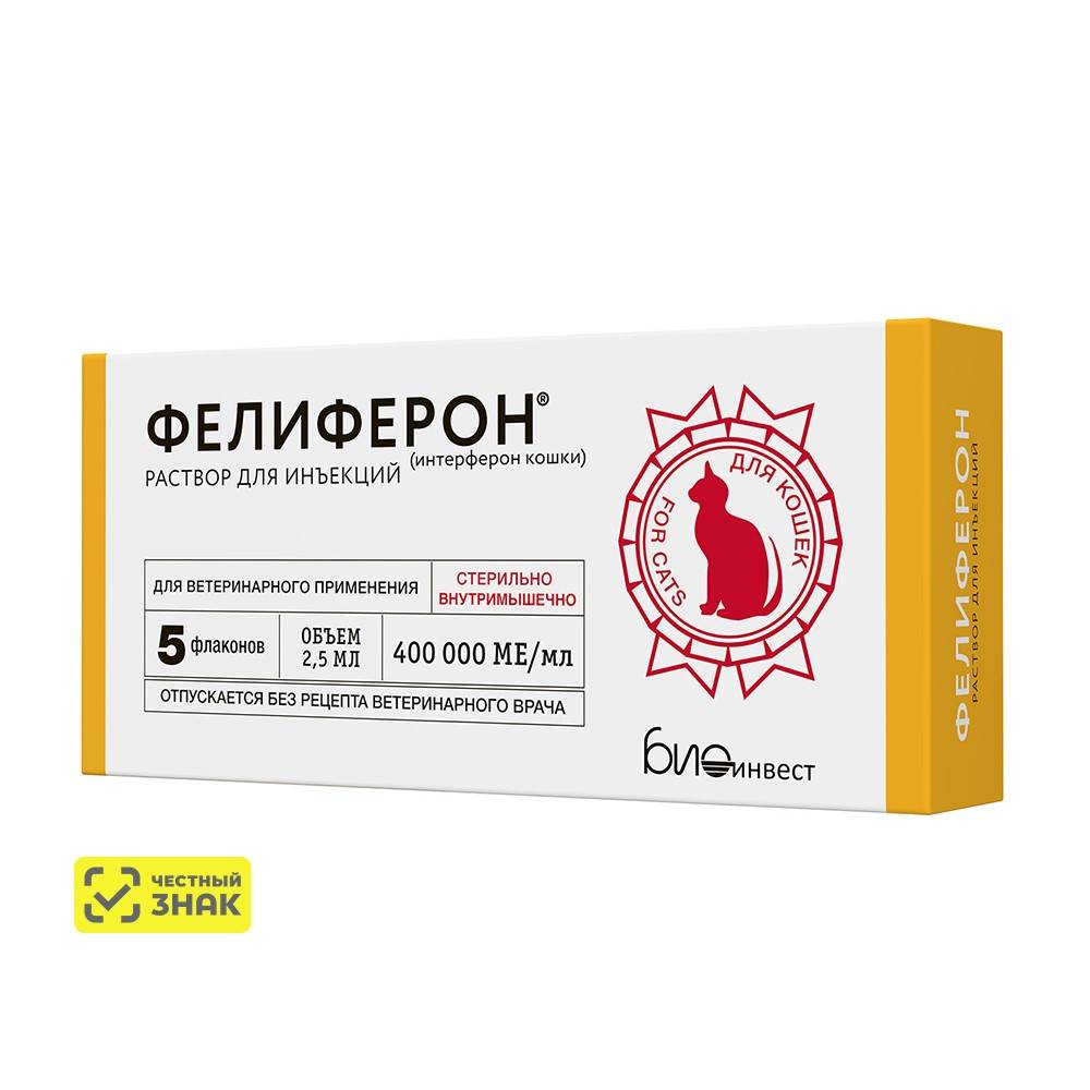Выпускают лекарственный препарат Фелиферон раствор для инъекций расфасованным по 2,5 мл в стеклянные силиконизированные флаконы объемом 3 мл, по 5,0 мл в стеклянные силиконизированные флаконы объемом 5 мл, по 5,0 мл или по 10,0 мл в стеклянные силиконизированные флаконы объемом 10 мл, укупоренные резиновыми пробками, укрепленными алюминиевыми колпачками. Препарат во флаконах вместимостью 3 мл упаковывают в ложемент корекс по 2 или 5 флаконов, во флаконах вместимостью 5 мл или 10 мл упаковывают в ложемент корекс по 1 или 3 флакона. Ложемент корекс с препаратом индивидуально укладывают в пачки с инструкцией по применению.