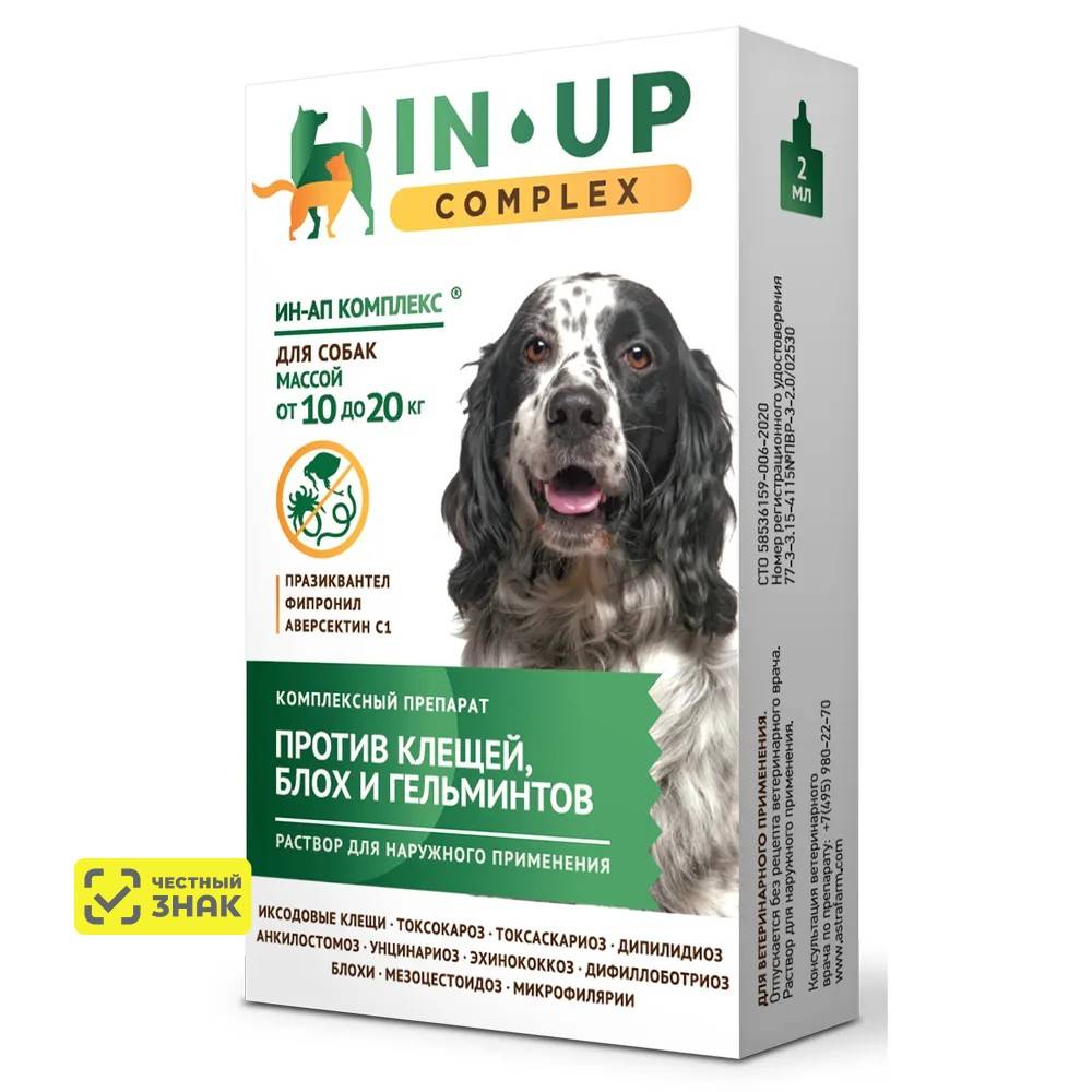 Астрафарм IN-UP Complex Капли на холку для собак весом от 10 до 20 кг против клещей, блох и гельминтов, 2 мл