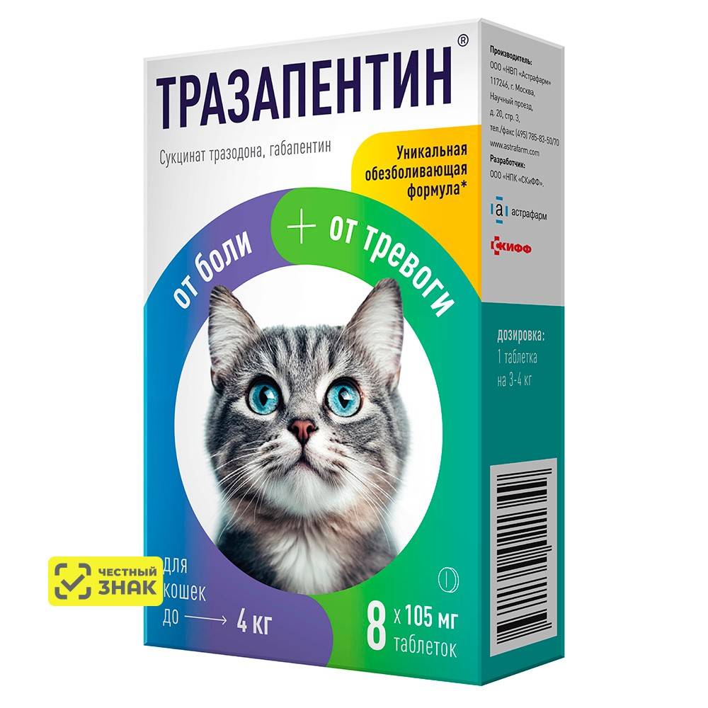 ДостоинстваУже не в первый раз используем Тразапентин, на котах с спокойным характером и возбужденным, на обоих срабатывает отлично, эффект намного лучше, чем у известных аналогов.
