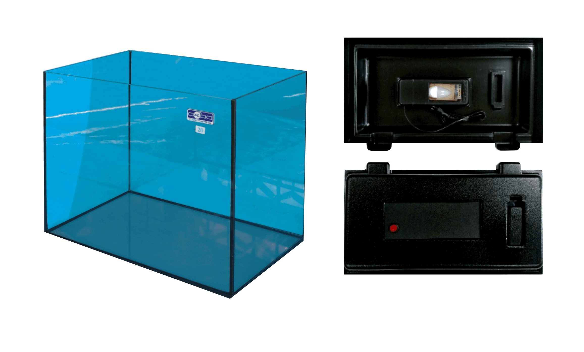 «Прямоугольный 50». Аквариум изготавливается из стекла 5 мм. Крышка комплектуется пластиковым герметичным плафоном и патроном со светодиодной лампой Е14. Сверху на крышке лючок для кормления и переключатель подсветки.