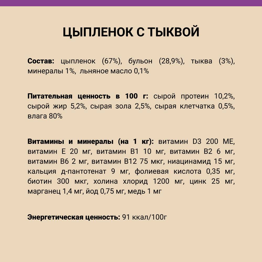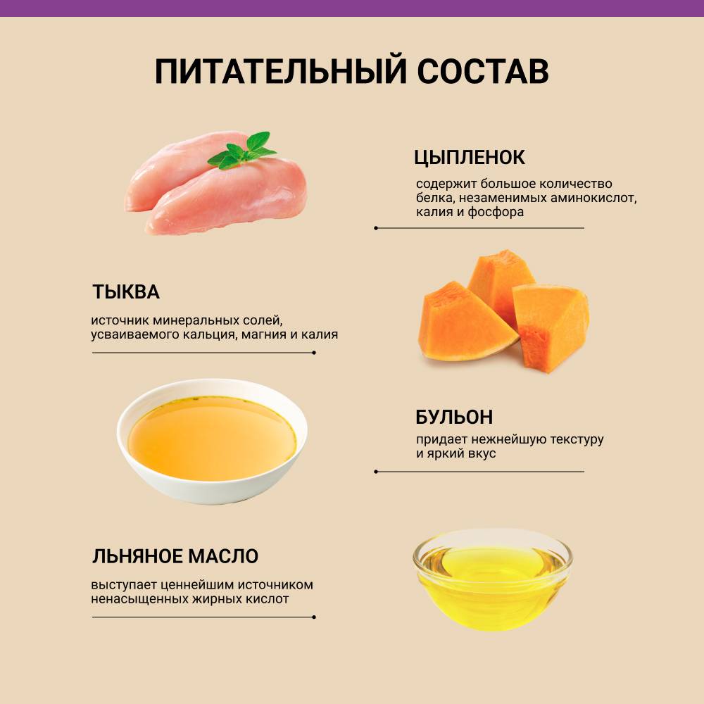 - Текстура корма отличается мягкостью, благодаря введению в состав наваристого бульона, что придает консервам насыщенный вкус и аппетитный аромат.