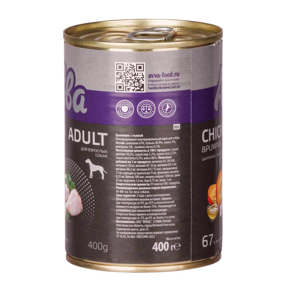 Корм для собак Авва цыпленок с тыквой является полнорационным питанием для вашего питомца на каждый день.