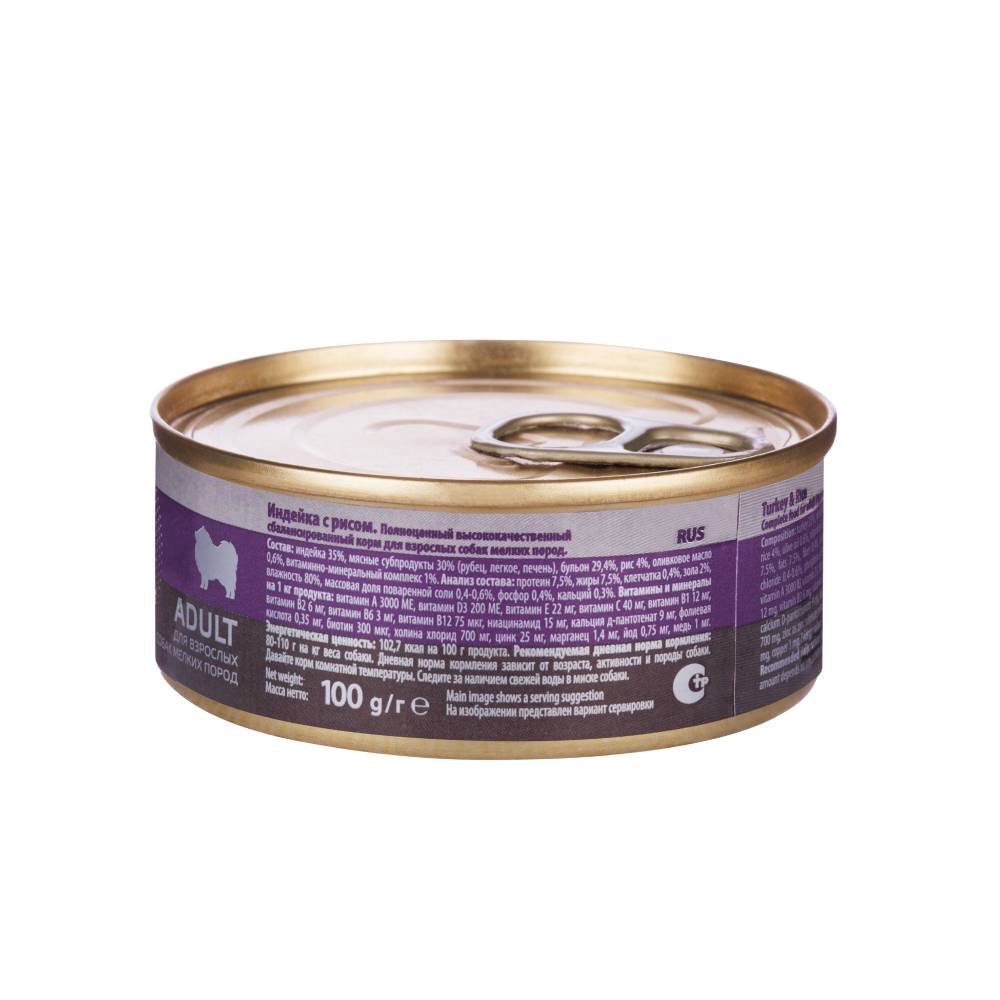 АВВА Adult Влажный корм (консервы) для взрослых собак мелких пород, с индейкой с рисом, 100 гр.