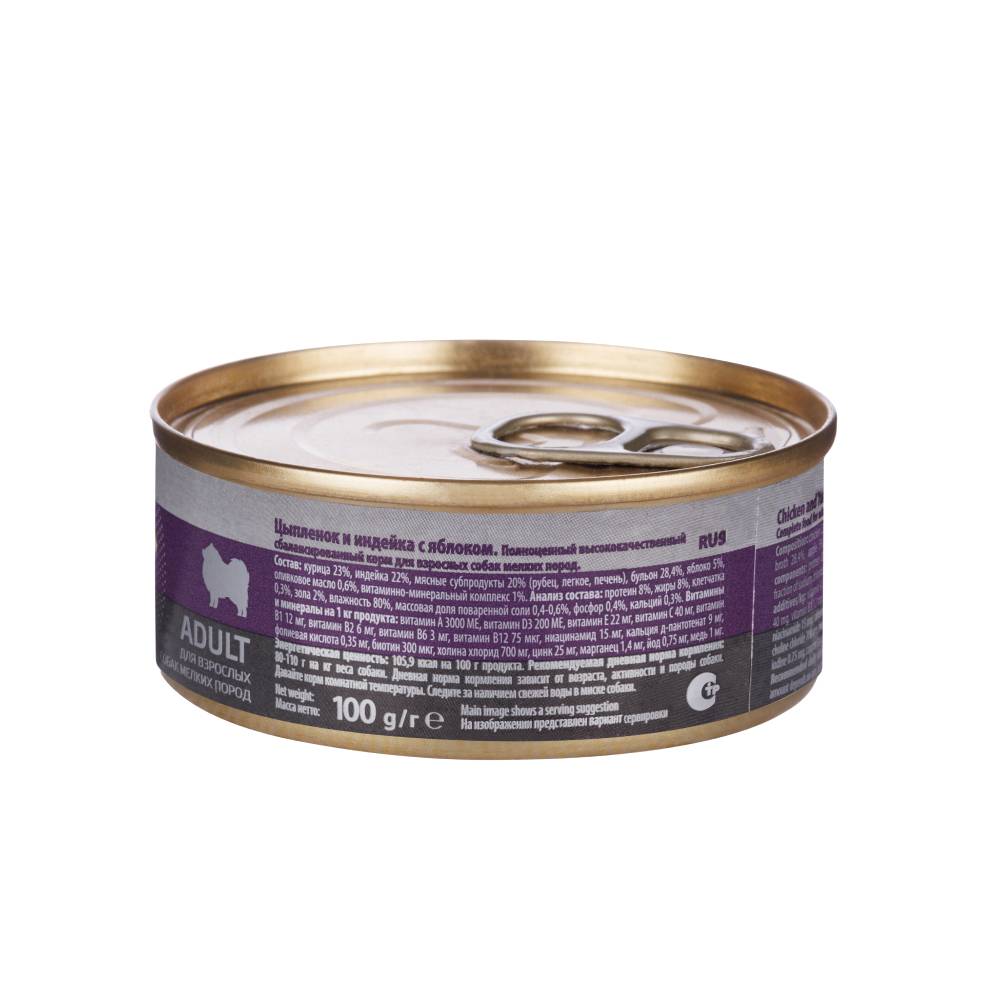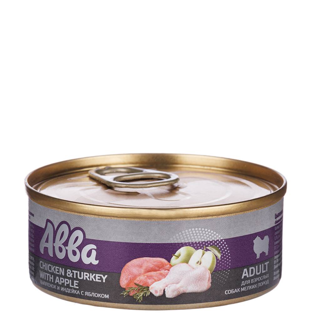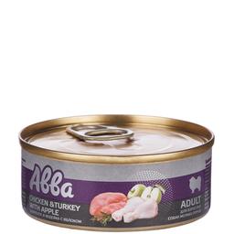 АВВА Adult Влажный корм (консервы) для взрослых собак мелких пород, с цыпленком и индейкой с яблоком, 100 гр.