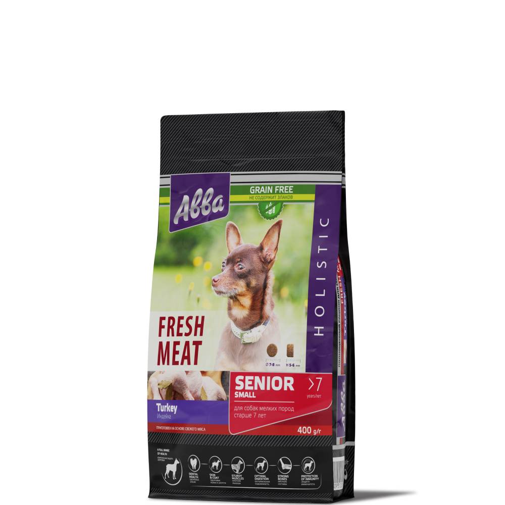 АВВА FRESH MEAT - полноценный рацион для собак мелких пород старше 7 лет с индейкой. Рацион приготовлен на основе свежего мяса, что позволяет отказаться от дополнительного введения воды при приготовлении сухого корма. Смесь пропитывается непосредственно соком самого мяса, что обеспечивает высокую вкусовую привлекательность продукта. Формула рациона содержит микроэлементы (медь, цинк, железо, марганец) в хелатной форме - максимально доступной для организма. В таком виде микроэлементы усваиваются в 2 раза лучше.