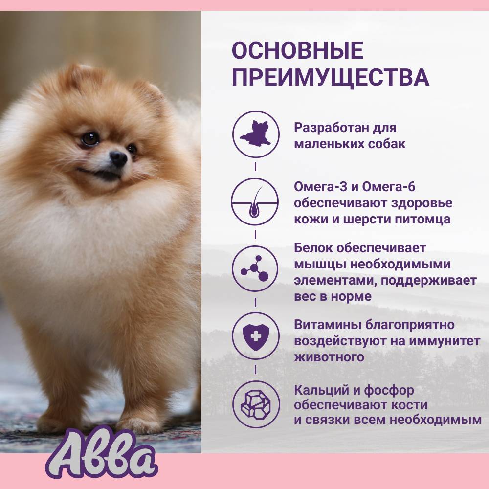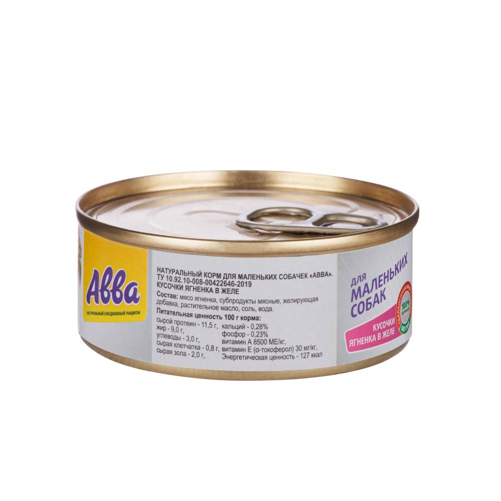 Натуральный корм для собак мелких и карликовых пород АВВА для маленьких собак кусочки ягненка в желе учитывает особенности питания подобных животных.