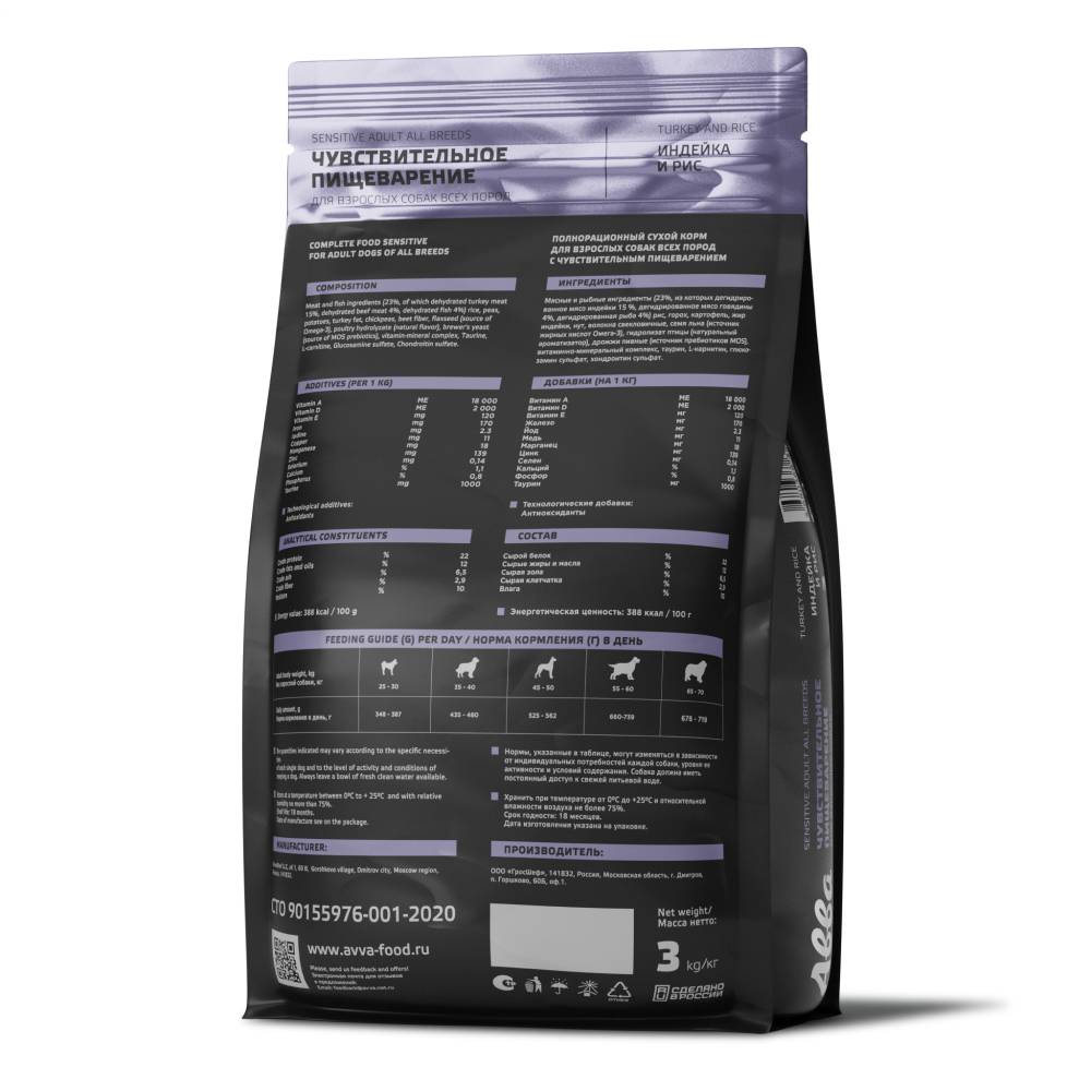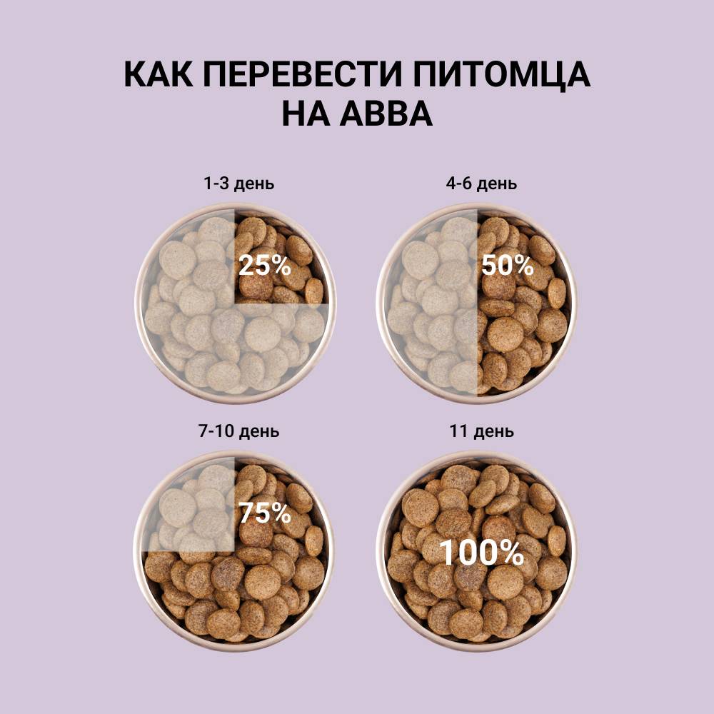 Полноценный рацион на каждый день для взрослых собак от бренда АВВА предназначен для питомцев с чувствительным пищеварением и склонных к аллергии.