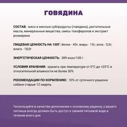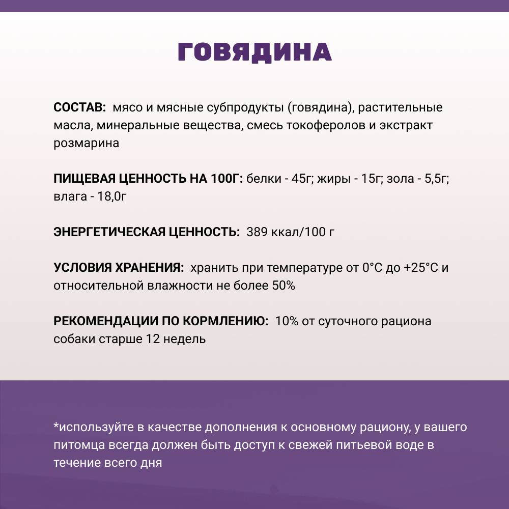 - Натуральный источник белка: говядина богата легкоусвояемыми аминокислотами, которые поддерживают мышцы и энергию собаки.