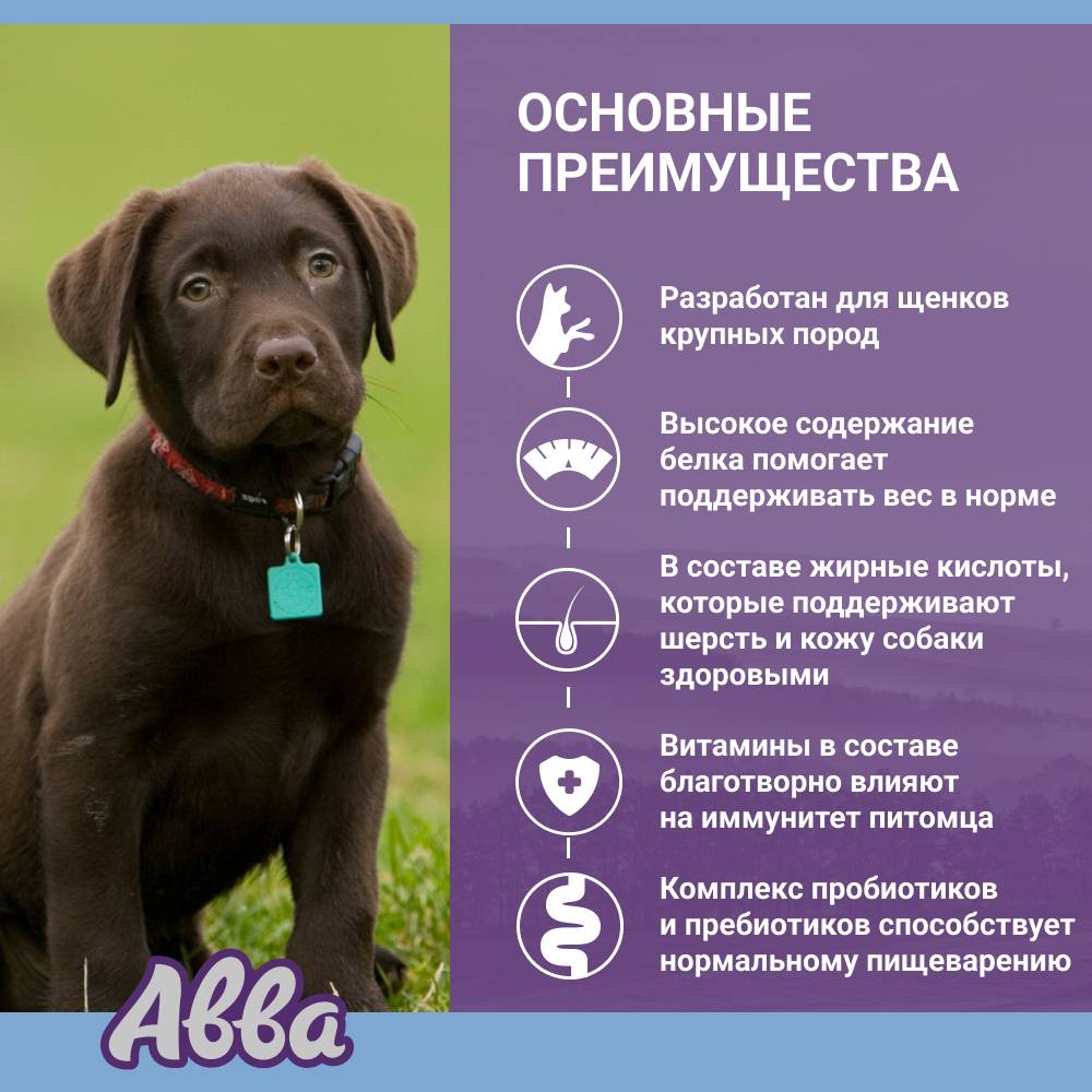 АВВА Premium Puppy Large с индейкой — полнорационный, сбалансированный сухой корм для щенков крупных пород собак. Корм обогащен витаминами , минералами, а также имеет богатый состав ингредиентов с высоким содержанием мяса. Способствует здоровому росту и развитию щенка в самый важный период его жизни.