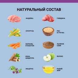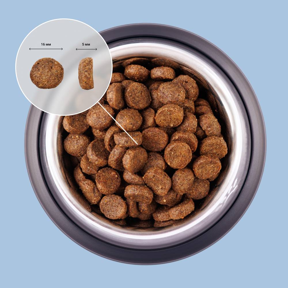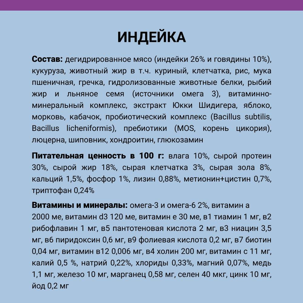 - Здоровье кожи и шерсти питомца обеспечивается благодаря содержанию в составе корма полезных жирных кислот Омега-3 и Омега-6.