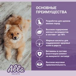 АВВА Holistic – это полнорационный корм для щенков мелких пород, изготовлен на основе свежего мяса индейки (15%). Корм сбалансирован по составу, количеству витаминов и питательных веществ для молодого растущего организма. Высокое количество протеина способствует быстрому насыщению и правильному развитию мышечного корсета.