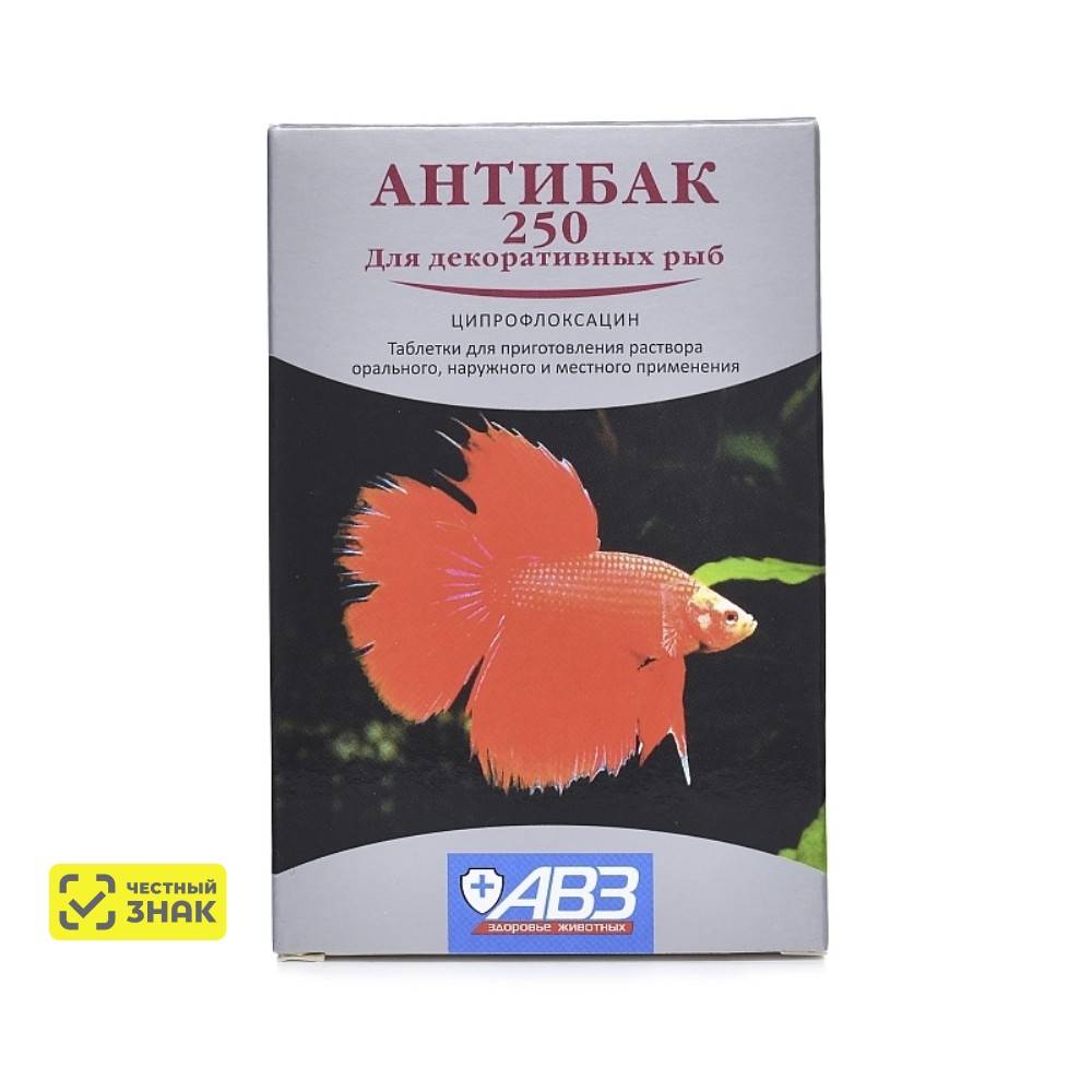 Антибак 250 применяют с лечебной и лечебно-профилактической целью при заболеваниях бактериальной этиологии декоративных рыб: аэромонозе, псевдомонозе, миксобактериозах, фурункулезе, вибриозе, стрептококкозе, бактериальном некрозе жабр и плавников и других инфекциях, вызванных чувствительными к ципрофлоксацину микроорганизмами.