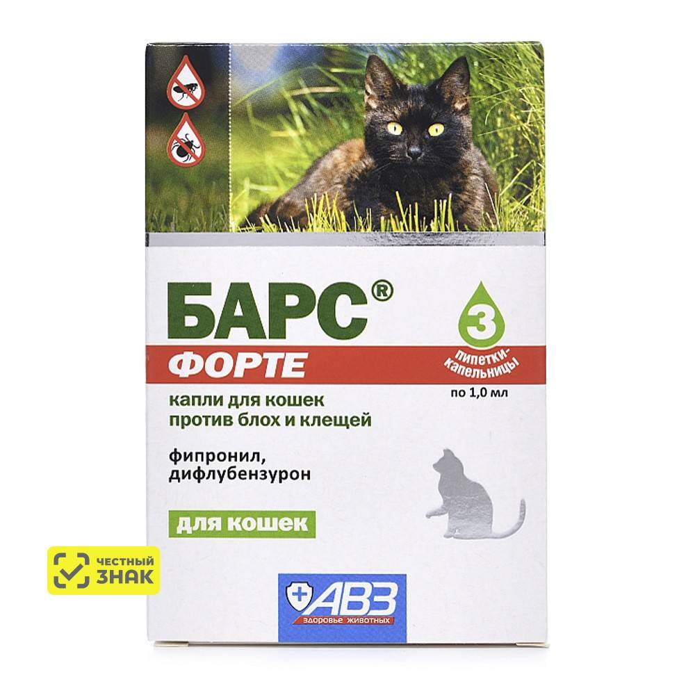 БАРС® форте капли для кошек против блох и клещей назначают кошкам с 8-недельного возраста с лечебной и профилактической целью при энтомозах, вызванных вшами, блохами, власоедами, и нотоэдрозе (чесотка), поражении иксодовыми клещами, а также для предотвращения нападения эктопаразитов на животных.