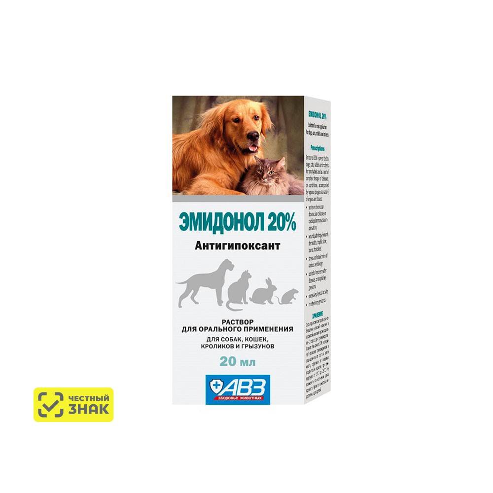 Эмидонол 20% назначают собакам, кошкам, кроликам, пушным животным, декоративным грызунам, свиньям, а также сельскохозяйственным птицам с профилактической целью и в составе комплексной терапии при заболеваниях, сопровождающихся гипоксией (кислородной недостаточностью) органов и тканей, в том числе при острой, хронической сердечно-сосудистой и сердечно-легочной недостаточности, раневой патологии (раны, дерматиты, трофическое язвы, ожоги, обморожения), при стрессах и интоксикациях различной этиологии, в восстановительный период после перенесённых заболеваний и хирургических вмешательств, при повышенных физических нагрузках и в ветеринарной гериатрии.