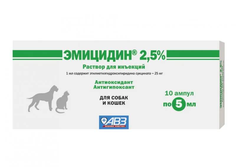 Эмицидин применяют собакам и кошкам с лечебной и профилактической целью при острой, хронической сердечно-сосудистой и сердечнолегочной недостаточности, в восстановительный период после перенесенных заболеваний или хирургических операций, в ветеринарной гериатрии, при патологических состояниях, сопровождающихся гипоксией (кислородной недостаточностью) органов и тканей, при раневой патологии (раны, дерматиты, трофические язвы, ожоги, обморожения).