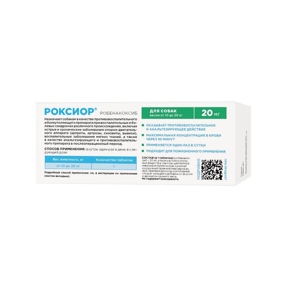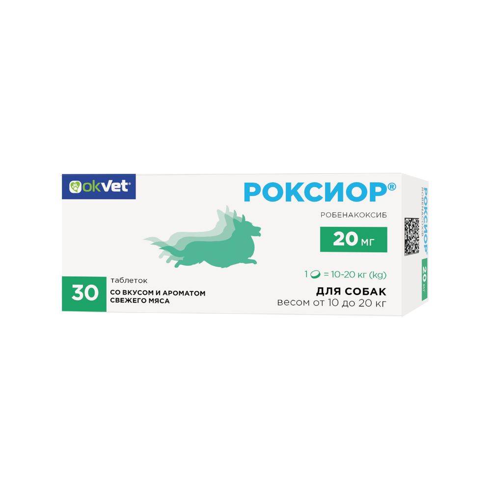 АВЗ Роксиор Нестероидный противовоспалительный и болеутоляющий препарат для собак от 10 до 20 кг, со вкусом и ароматом свежего мяса, 20 мг, 30 таблеток