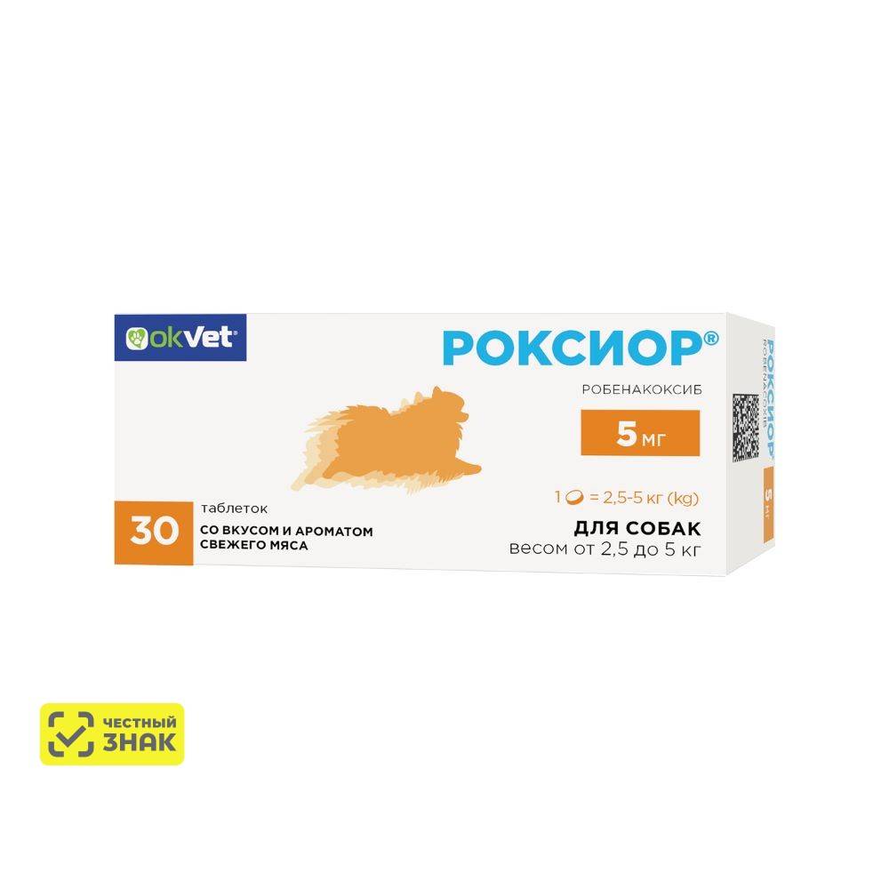 АВЗ Роксиор Нестероидный противовоспалительный и болеутоляющий препарат для собак от 2,5 до 5 кг, со вкусом и ароматом свежего мяса, 5 мг, 30 таблеток