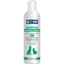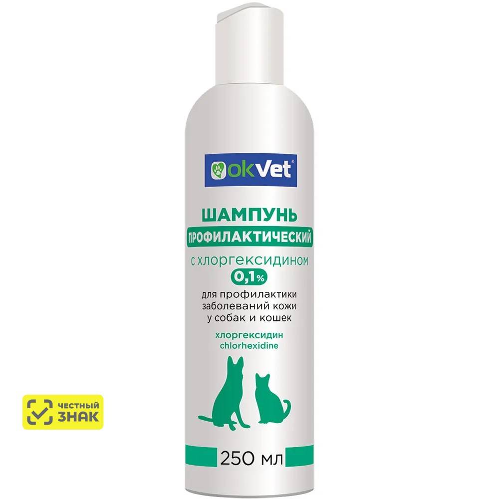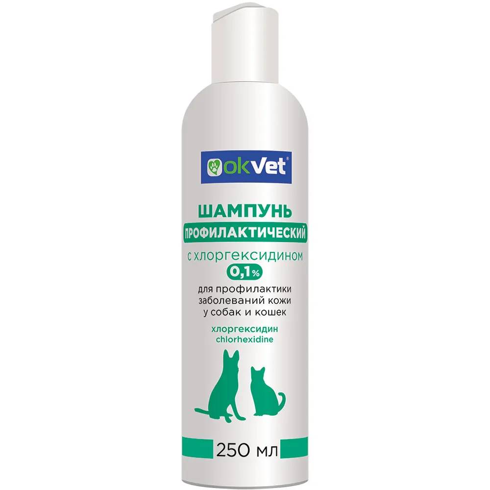 ОКVЕТ® шампунь профилактический с хлорrексидином назначают собакам и кошкам в качестве антисептического средства для лечения мелких ран, ссадин, порезов и других заболеваний кожи, осложненных бактериальной инфекцией, в комплексе с симптоматическими и патогенетическими средствами, а также для профилактики осложнений различных повреждений кожи после стрижки и тримминга.