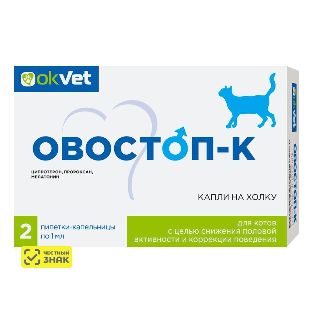 Овостоп-К препарат для снижения половой активности и коррекции поведенияу котов (2 пип/уп)