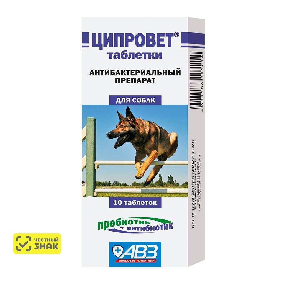 «Ципровет таблетки для кошек и собак мелких пород»; - собакам средних и крупных пород – 1 таблетка на 10 кг массы животного «Ципровет таблетки для собак».