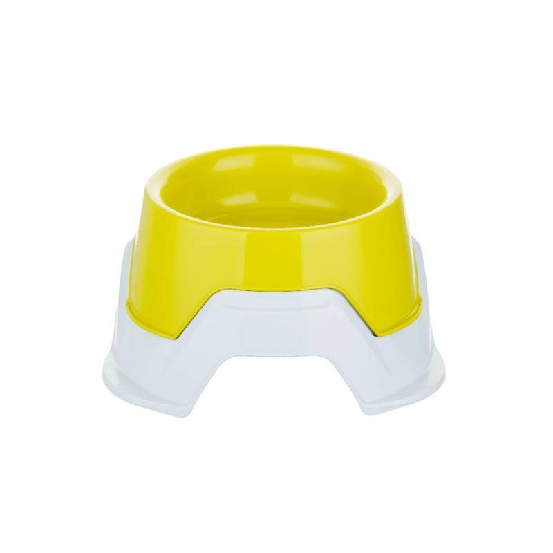 Миска пластиковая двойная для собак 650-360 мл, желтая.