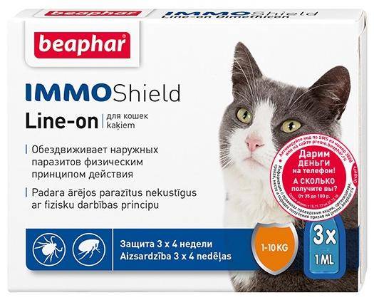 Beaphar IMMO Shield Line-on капли на холку для кошек весом от 1 до 10 кг от блох и клещей, 3 пипетки