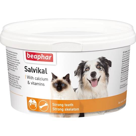 Кормовая витаминно-минеральная добавка Salvikal для собак и кошек с 12-месяцев, используется для придания животным жизненной силы, укрепления мускулатуры, зубов и костей.