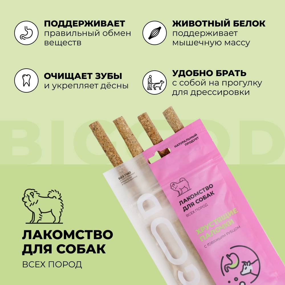 BIGOOD Хрустящие палочки с говяжьим рубцом – это вкусное и натуральное лакомство для собак всех пород. Отличный источник белка, незаменимых аминокислот, витаминов и микроэлементов. Это лакомство станет не только приятным угощением для вашего питомца, но и полезным дополнением к ежедневному уходу за его здоровьем.