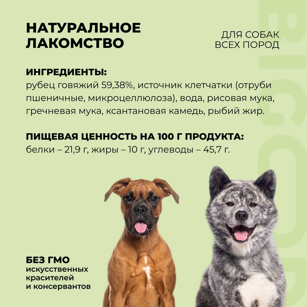 - Говяжий рубец— источник легкоусвояемых белков, поддерживающих мышечную массу и энергию питомца.