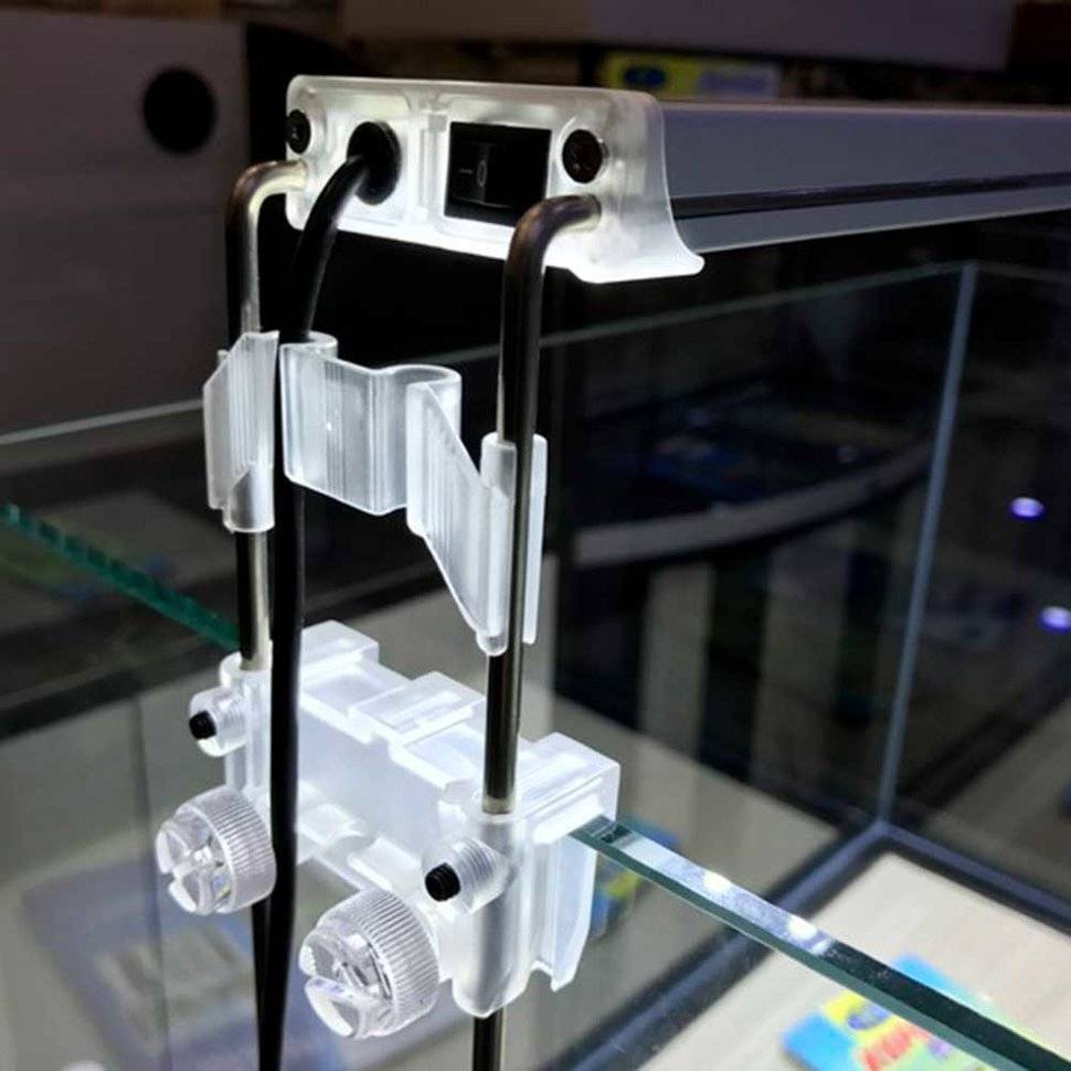 - Металлические раздвижные ножки с надёжным креплением на стекло, с их помощью светильник можно устанавливать на аквариум разной длины и регулировать его высоту от 0 до 12 см.
