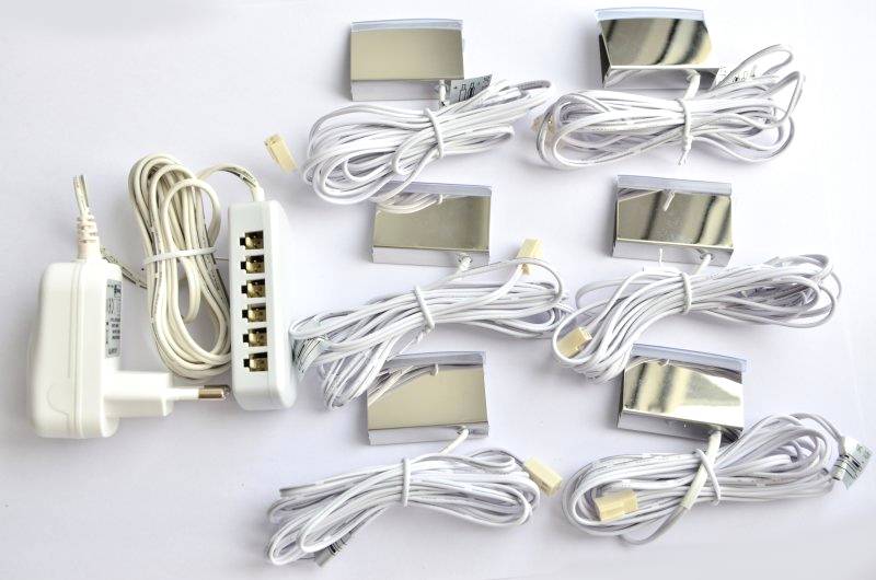 Комплект светодиод. светильников JET L-40мм (6шт) на 6полок садаптером,коннектором и блоком питания (шт.)