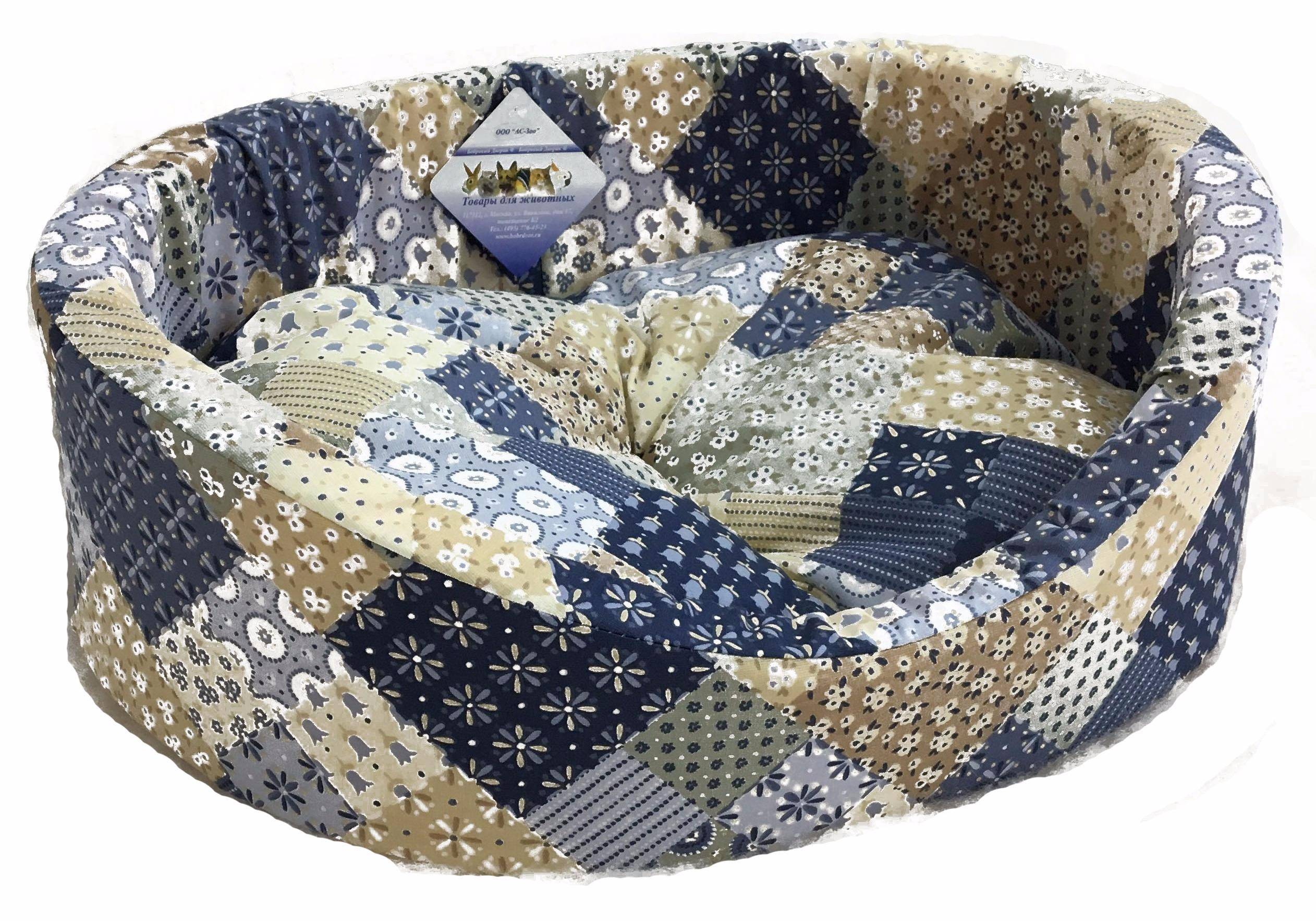 Бобровый Дворик Лежак для кошек и собак 64х49х20см с бортиком Пэчворк №4