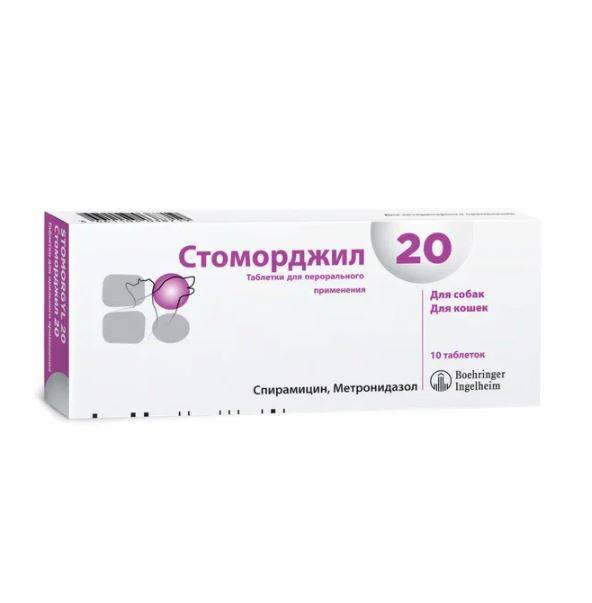 Стоморджил 2, 10, 20 назначают собакам и кошкам для лечения бактериальных инфекций, вызванных чувствительными к метронидазолу и спирамицину микроорганизмами, и в первую очередь инфекций ротовой полости, включая заболевания периодонта, стоматит, гингивит и пиорею.