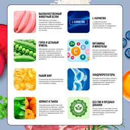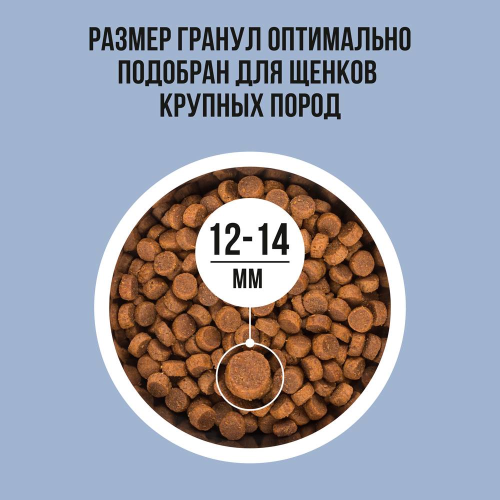 - Повышенное содержание высококачественного животного белка в составе — 75%. Этот показатель рассчитан ветеринарными диетологами и позволяет обеспечить растущий организм щенка необходимыми аминокислотами без избыточной нагрузки на почки.