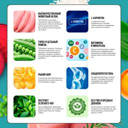 - 70% высококачественного животного белка в составе. Этот показатель рассчитан ветеринарными диетологами и позволяет обеспечивать организм собаки необходимыми аминокислотами без избыточной нагрузки на почки.