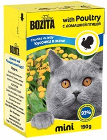 Консервы Bozita (0.37 кг) Feline chunks in jelly with Minced Chicken кусочки в желе с курицей высочайшего качества для кошек, содержат в себе сбалансированное количество минералов и витаминов, аминокислот, которые необходимы вашему питомцу. Корм содержит 93% мясного компонента, обладает натуральным вкусом. Корм Bozita имеет мягкую консистенцию, подойдет для пожилых кошек. Линейка кормов Bozita включает в свой состав бета-глюкан, способствующий укреплению иммунитета животного, а также защите вашей кошки от вредных микробов внутри организма. Питание рассчитано для животных всех возрастов. Подходит беременным кошкам и животным с чувствительным пищеварением.