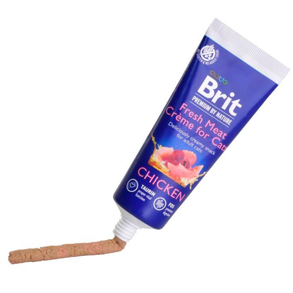 Brit Premium Fresh Meat Crème для кошек – вкусное лакомство в виде паштета в тюбике, делает кормление легким и удобным.